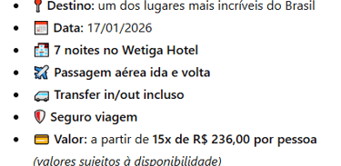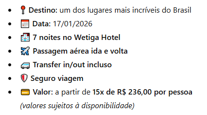 Entre em contato para pacotes de viagem incríveis.